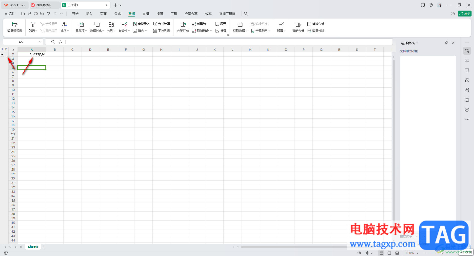 4.随后在表格的左侧上方的位置即可看到有一个创建行组的样式标志,你可以在右侧单元格中输入一个数据。