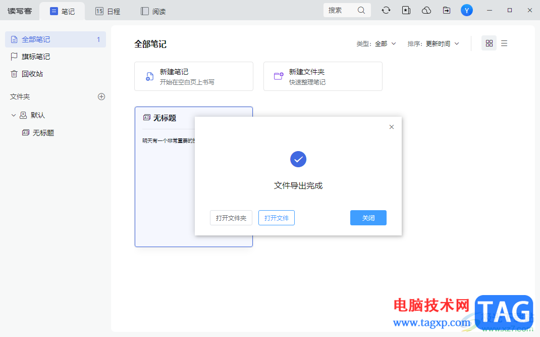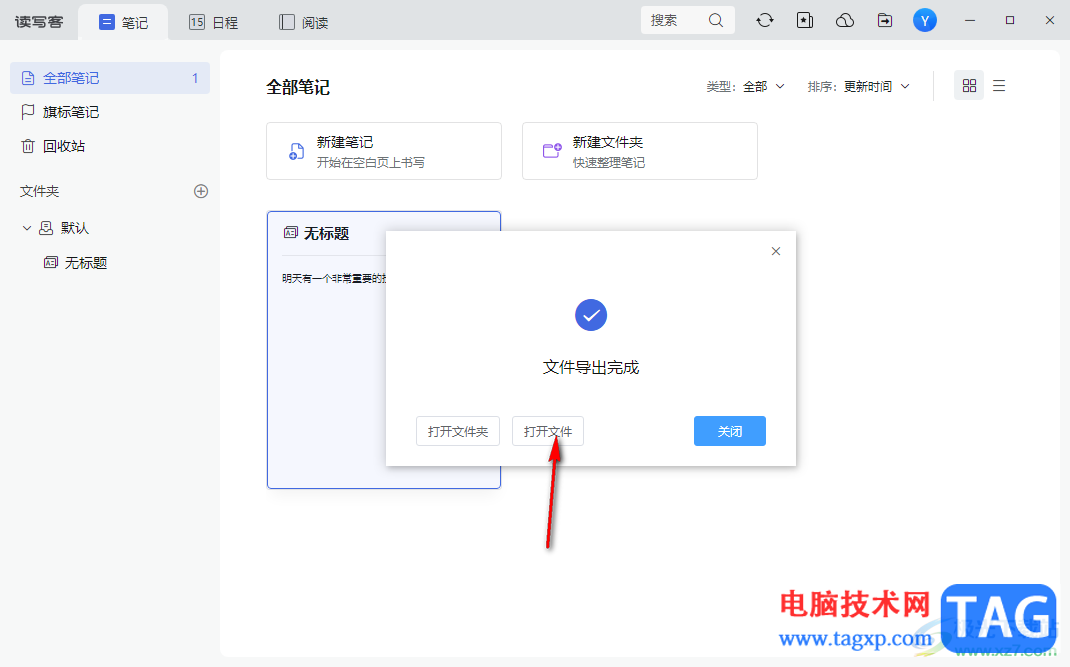 5.导出完成之后,可以点击【打开文件】按钮进行查看导出的笔记内容。