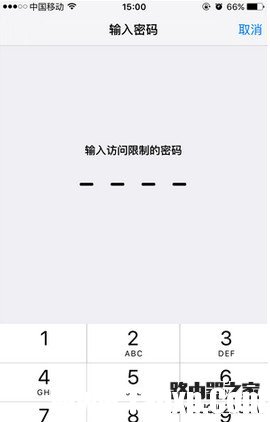 2.由于之前打开了访问限制功能的时候,是需要设置密码的,所以这里要输入四位数字密码以后才可以进入。密码是自己设置的,有可能与你的锁屏密码一样,也有可能是其它的。