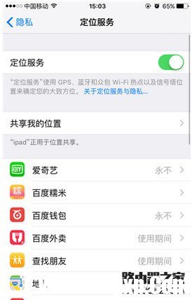 5.设置完成以后,我们再次打开iPhone上的“定位服务”选项,发现已经可以进行手动设置了。