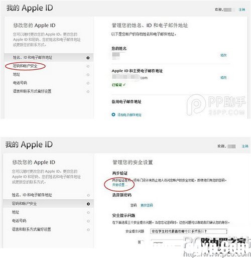 3. 点击左侧的“密码和账户安全”选项,并回答此前设置的安全提示问题,开始两步验证的设置。
