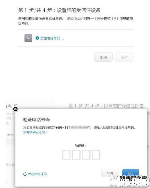 5. 添加手机号码之后,在弹出的验证框中输入收到的短信验证码。