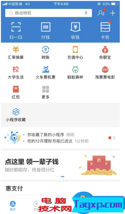 打开支付宝最新版,进入首页,可以看到腰封位置增加了“小程序收藏”入口,下拉页面,就能快速使用已收藏小程序。