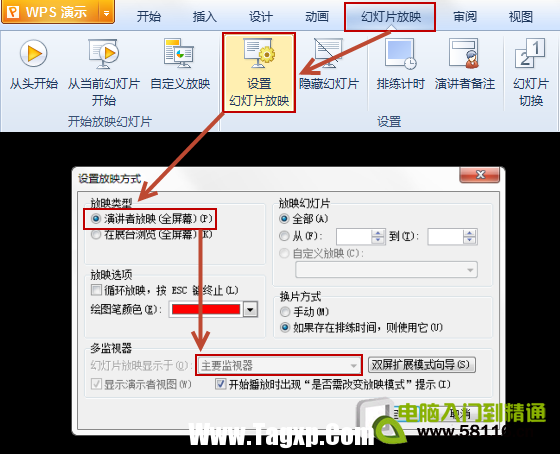 - 7、如何设置PPT幻灯片放映不显示备注,只让备注显示在自己屏幕上。 答:使用演讲者放映需要有正确的和投影连接 ,链接后, 在菜单栏;幻灯片放映”→;设置幻灯片放映”中的;多监视器”中选择显示于;第二监视器” 。