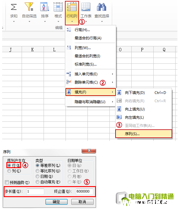 - 5、空白的表格中,如何把A列都填充数字序列1、2、3,共有60万行... 答: 1.先选中一列,然后在菜单栏中依次打开【开始】→【行和列】→【填充】→【序列】; 2.在序列中输入值后确定即可,如下图所示:(注:要设置60万行,可以下载3721版本,该版本支持百万行,地址:http://bbs.wps.cn/thread-22358740-1-1.html)
